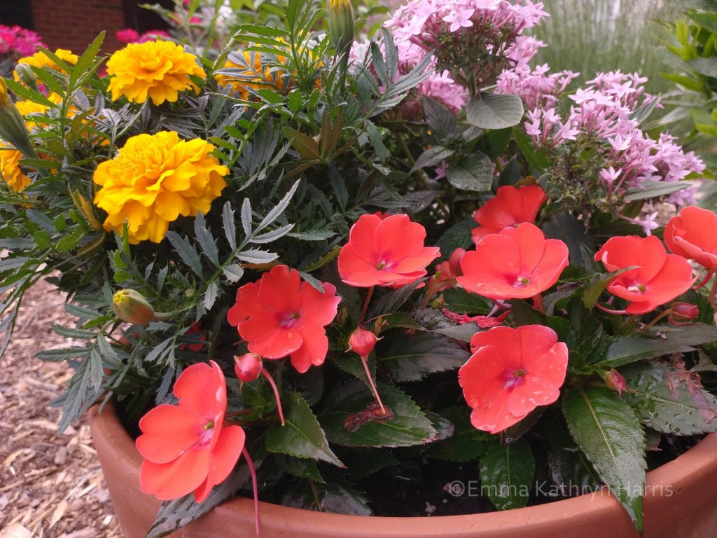 The most important item you’ll want to keep in mind is watering needs. Plants are not created equal. Some require moist soil, others want it a little drier at times. Plant your flowers together that require similar water and soil requirements. The maintenance and care will be easier.